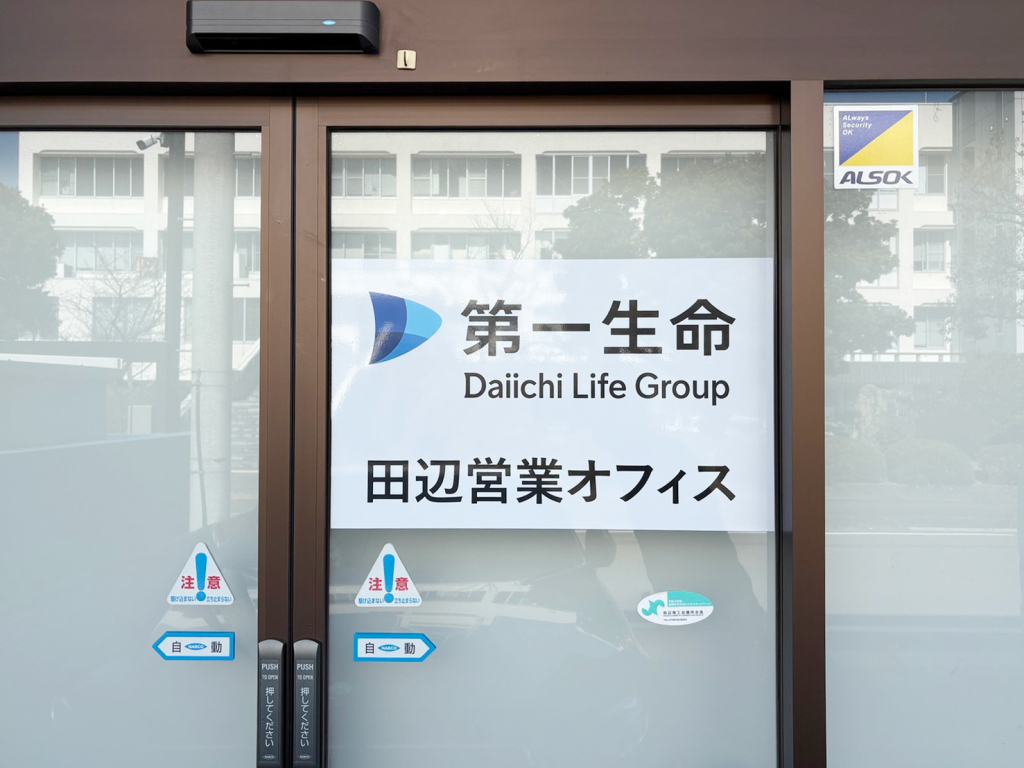 事務所入口ガラス面サイン
