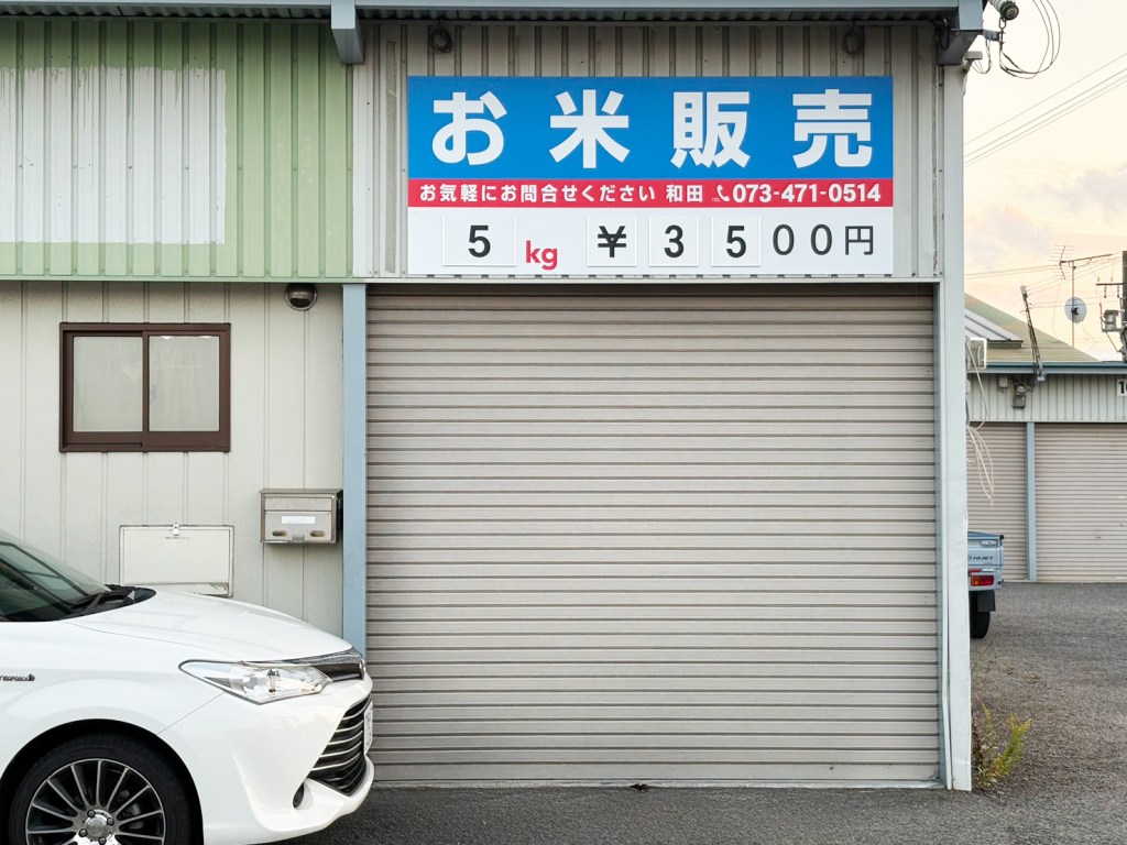和田様のお米販売時に使用する看板の設置施工をおこないました。 販売時の金額/グラム数を変更できる仕様になっています。