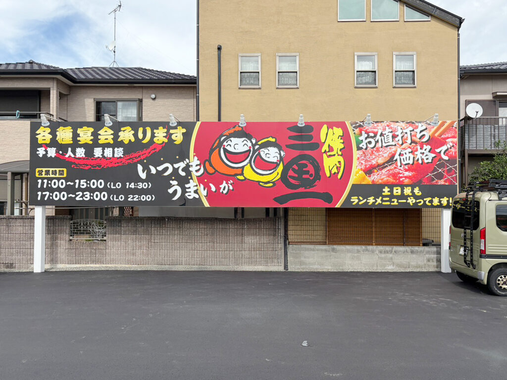 焼肉三国一の看板FFシート貼り替え、案内看板貼り替えおよびデザインをおこないました。